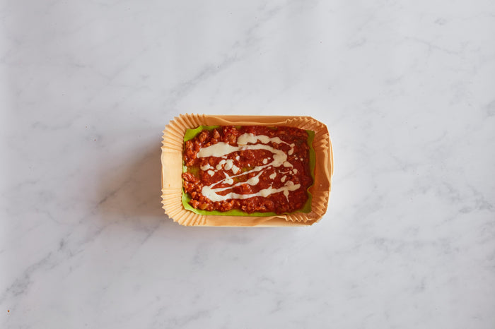 Lay a sheet of blanched pasta in the base of the tray.